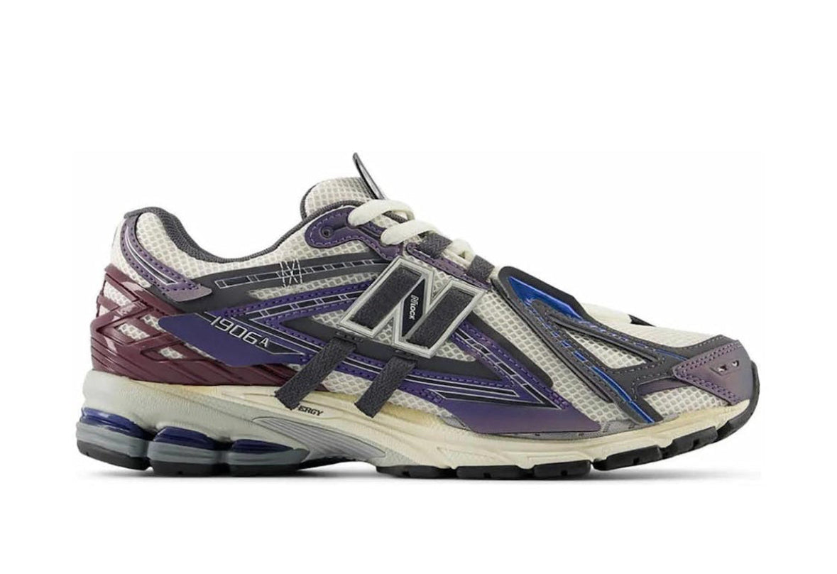 The New Balance 1906A “Inkwell / Sea Salt” is a bold and futuristic take on the classic runner, blending deep navy and purple tones with a clean off-white base. The upper features a layered mix of mesh and synthetic overlays, creating a textured, deconstructed look. Burgundy and electric blue accents give the shoe an unexpected pop, while the slightly yellowed midsole adds a vintage, worn-in feel. Under the hood, it’s built for comfort and performance with lightweight cushioning, shock-absorbing tech in the heel, and a supportive sole unit. Altogether, this pair feels like a perfect mash-up of retro sport and modern streetwear—eye-catching, comfortable, and built to stand out.