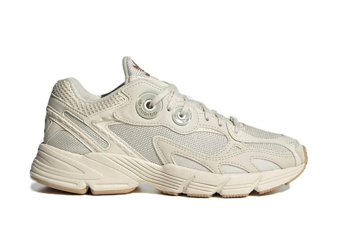 The Adidas Astir Wonder White Beige Gum (GV9200) blends nostalgic Y2K‑inspired chunky styling with modern comfort. Released in mid‑2022 at around US $100, its soft, breathable mesh and synthetic upper comes in a creamy off‑white/taupe hue, topped with signature oversized eyelets and tonal lacing for a retro yet refined look. A cushioned EVA midsole and lightweight rubber outsole in gum provide a flexible, cloud‑like ride—ideal for all‑day wear. The fit is typically true to size, though some report slight heel slippage and a snug forefoot; sizing up may help. Crafted with over 50% recycled content, it merges sustainability with streetwear ease.