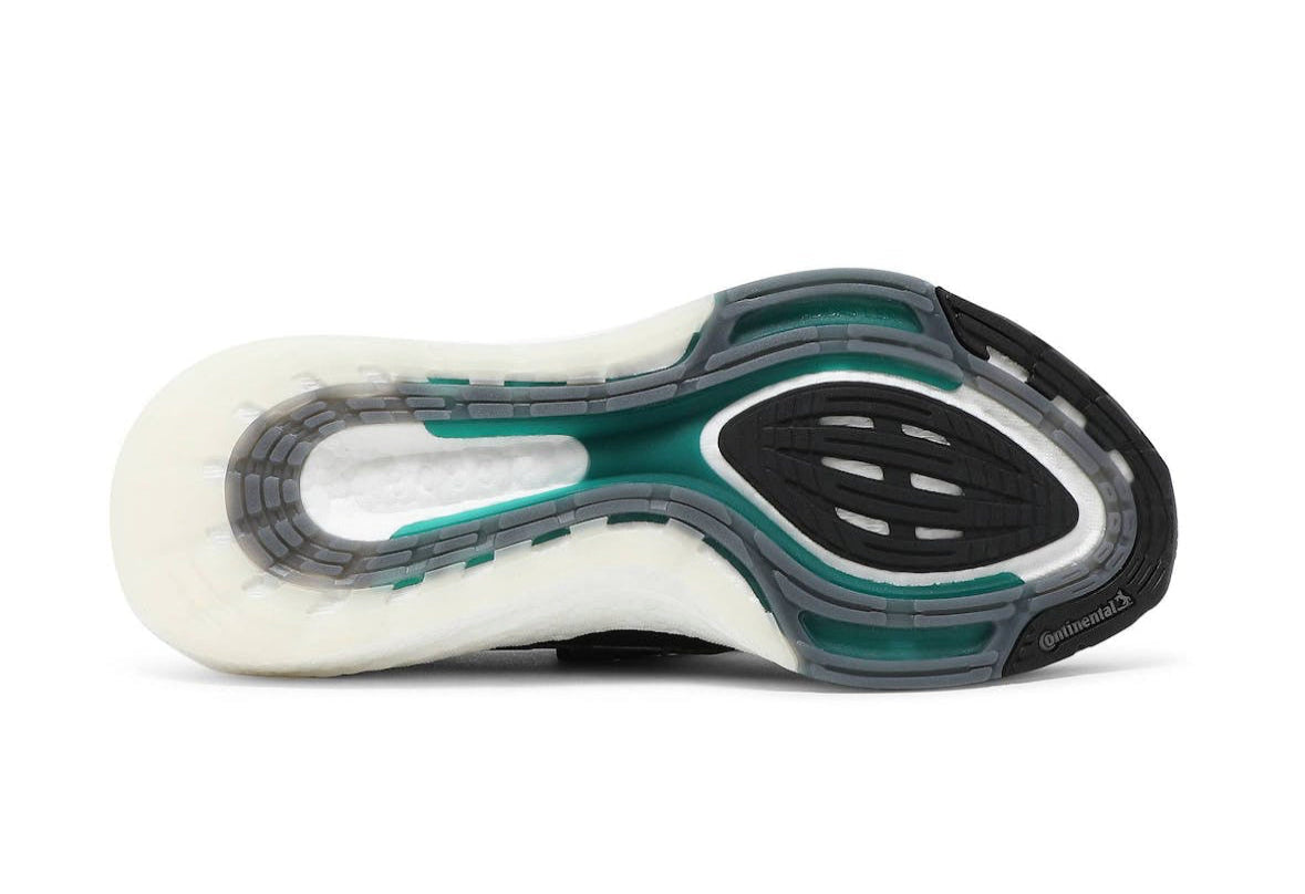 The Adidas UltraBoost 21 "Black Sub Green" is a performance running shoe that combines bold style with advanced technology. It features a sleek black Primeknit+ upper for adaptive support and breathability, complemented by striking Sub Green accents on the midsole and heel. The shoe is equipped with a full-length Boost midsole, offering exceptional energy return and cushioning, while the updated LEP torsion system enhances stability and responsiveness. Designed for both comfort and performance, the UltraBoost 21 delivers a snug, sock-like fit, making it ideal for runners and casual wearers alike who value innovation and a standout aesthetic.
