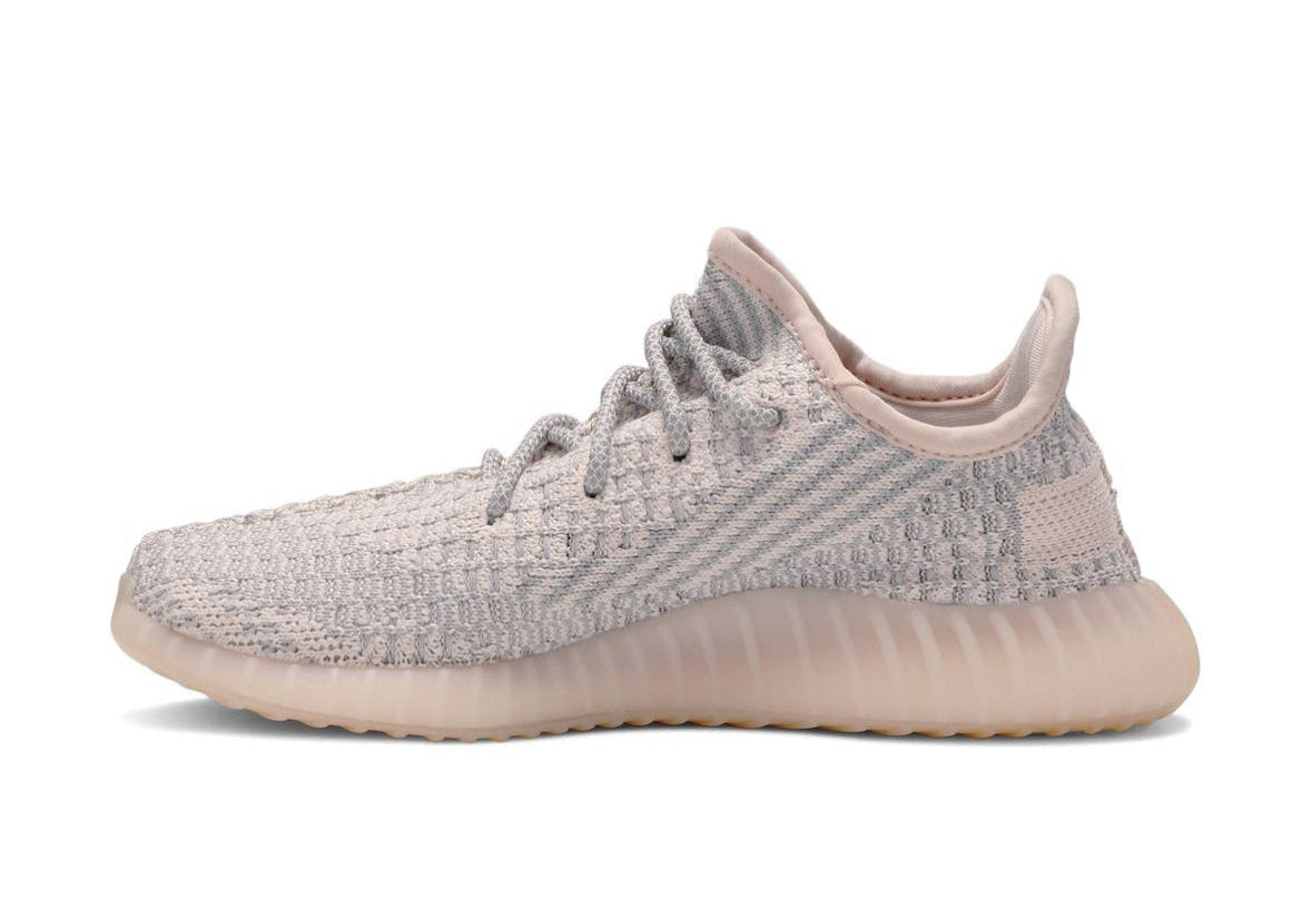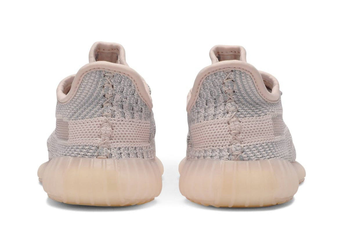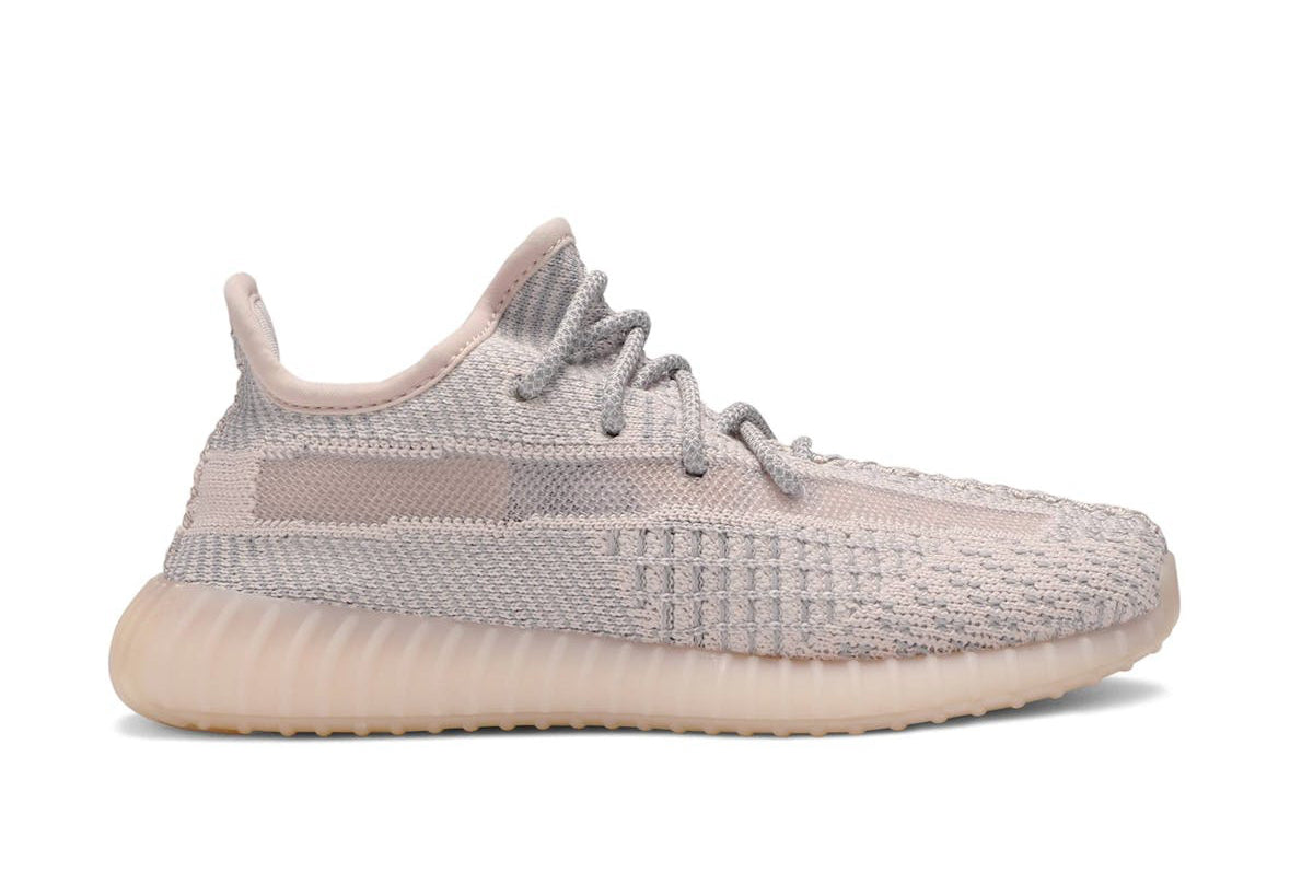 The Adidas Yeezy Boost 350 V2 "Synth" is a unique regional release from Kanye West's Yeezy line, launched in June 2019. Featuring a soft pale pink Primeknit upper with a translucent stripe, it offers a sleek and modern aesthetic. The design forgoes the heel tab for a cleaner look and includes Adidas' signature Boost cushioning, ensuring maximum comfort. The "Synth" colorway was released exclusively in Africa, the Middle East, India, and select Asian countries, adding to its rarity and appeal. With its muted tones and futuristic design, it remains a standout in the Yeezy 350 V2 lineup.