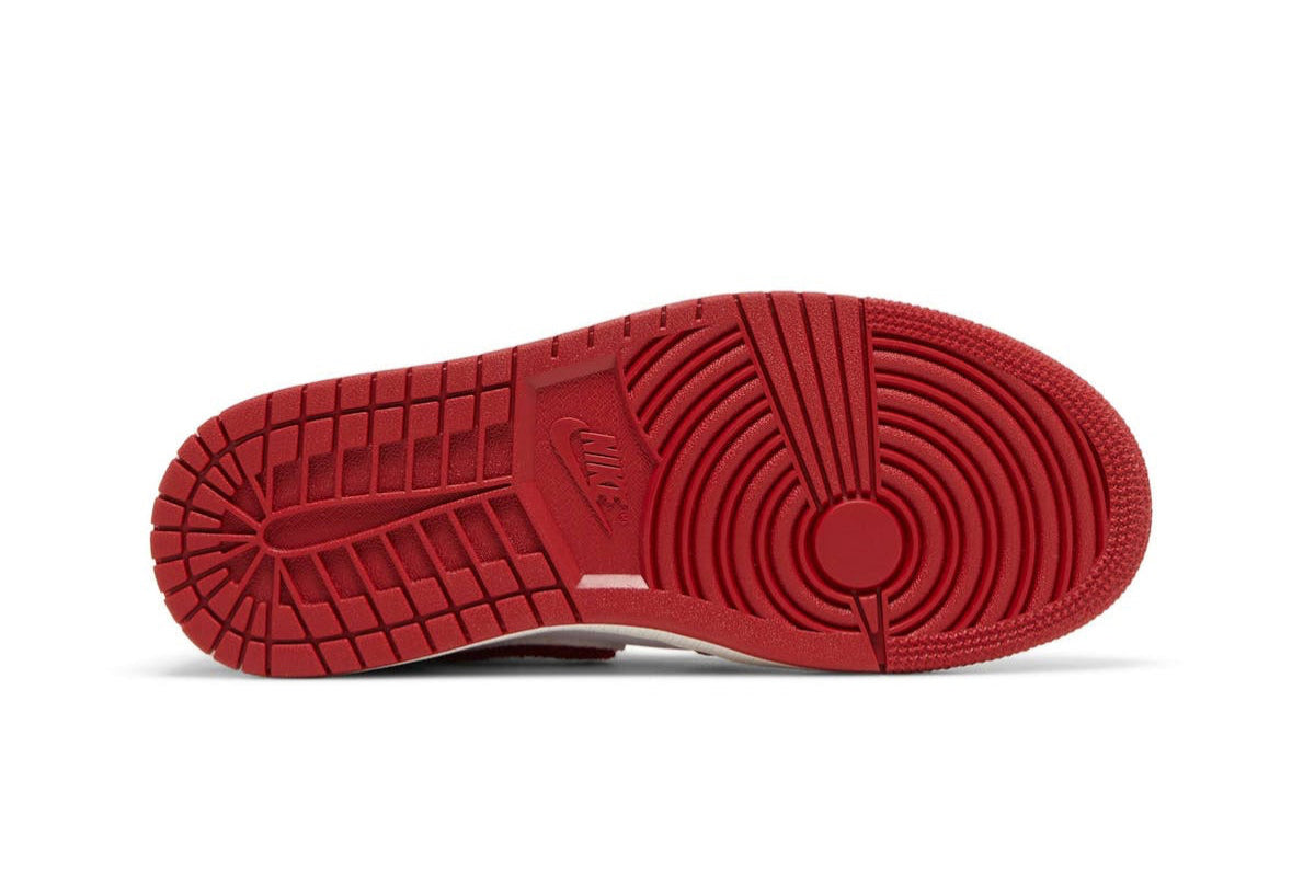 The Air Jordan 1 High OG "Chenille" is a women's-exclusive sneaker that combines classic heritage with bold, stylish details. It features a premium mix of red suede overlays, white leather underlays, and a soft grey collar. The standout element is the chenille Swoosh, made from varsity jacket-like material, giving it a nostalgic, sporty vibe. OG branding, including the woven Nike Air tongue tag and Wings logo, adds authenticity. A white midsole and red outsole complete the design. Released in 2022, this shoe blends vintage Jordan DNA with fresh textures, appealing to both collectors and fashion-forward sneaker fans.