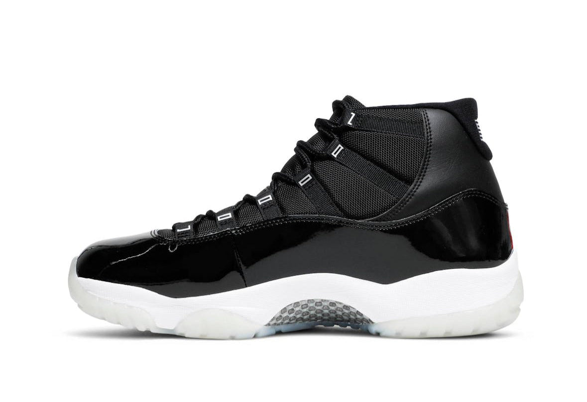 The Air Jordan 11 Retro "Jubilee" 25th Anniversary celebrates a quarter-century of the iconic silhouette with a sleek and timeless design. Released in 2020, it features a classic black mesh upper with premium patent leather overlays, accented by metallic silver Jumpman branding and “23” on the heel. A white midsole and translucent outsole complete the look, blending elegance and performance. Inspired by original design sketches from Tinker Hatfield, the "Jubilee" honors the legacy of the Air Jordan 11 while introducing modern flair. It’s a must-have for collectors and fans of one of Jordan Brand’s most beloved models.