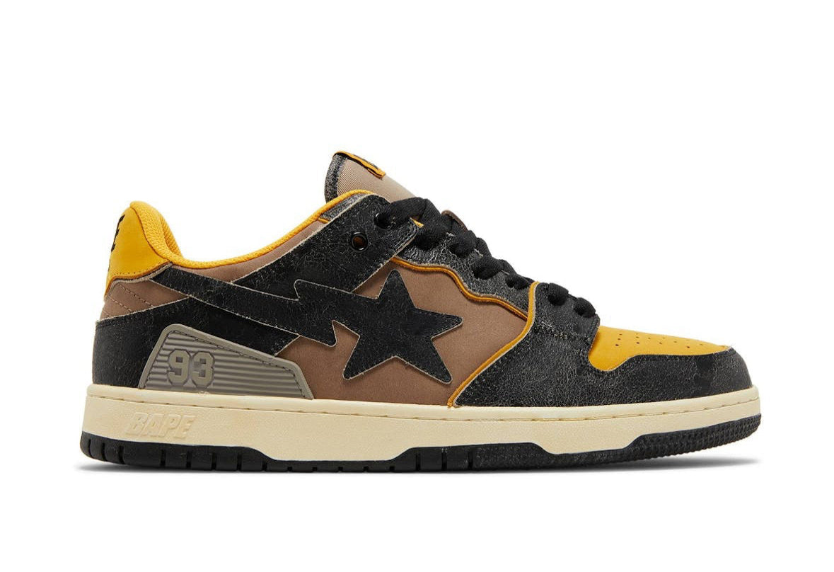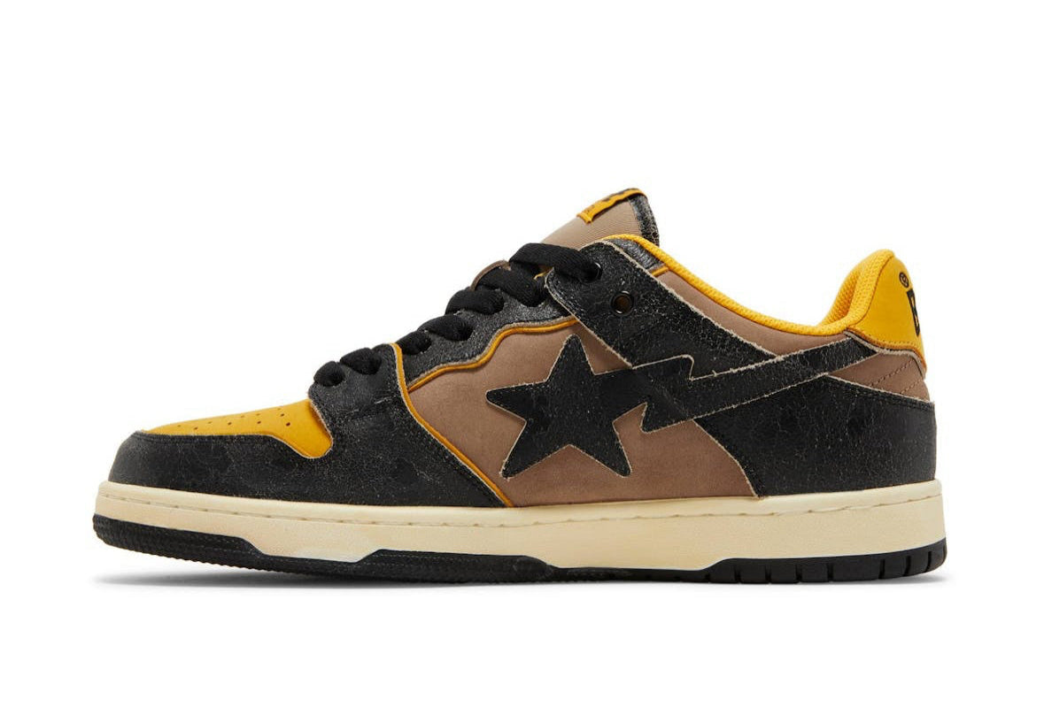 The BAPE SK8 STA Yellow is a bold and vibrant sneaker that reflects the signature streetwear style of A Bathing Ape. Featuring a bright yellow leather upper, the shoe is accented with BAPE’s iconic star logo in white on the sides. Its design is heavily inspired by classic skate shoes, offering a chunky silhouette, padded collar, and durable rubber sole for everyday wear. The SK8 STA also includes subtle branding details like the BAPE logo on the tongue and heel tab. With its eye-catching colorway and premium materials, the Yellow SK8 STA stands out as a statement sneaker in any collection.