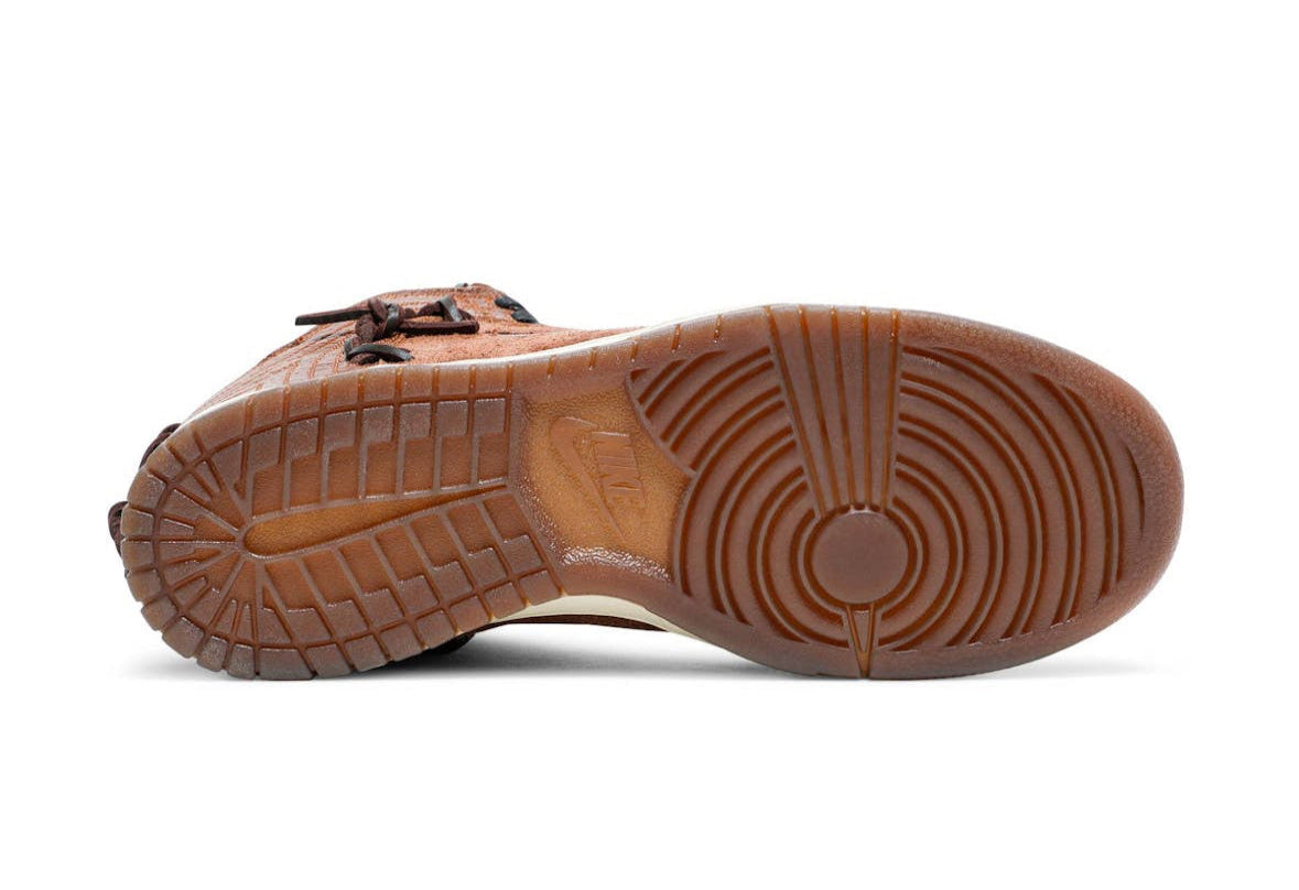 The Bodega x Nike Dunk High “Legend” is a collaborative sneaker that blends vintage craftsmanship with streetwear style. Drawing inspiration from rawhide baseball gloves and Americana heritage, the shoe features premium brown pebbled leather and hairy suede overlays. Hand-stitched details, rawhide laces, and embossed branding highlight its artisanal design, while hidden jewel Swooshes add a subtle luxury touch. A stash pocket behind the tongue brings a functional twist, staying true to Bodega’s storytelling approach. Combining rugged textures with classic Dunk DNA, the “Legend” celebrates heritage, community, and the enduring influence of craftsmanship within sneaker culture.