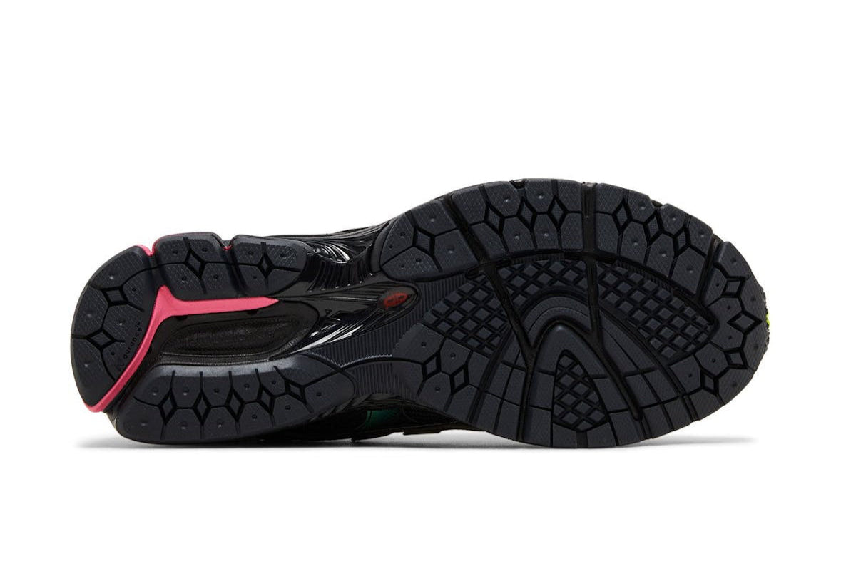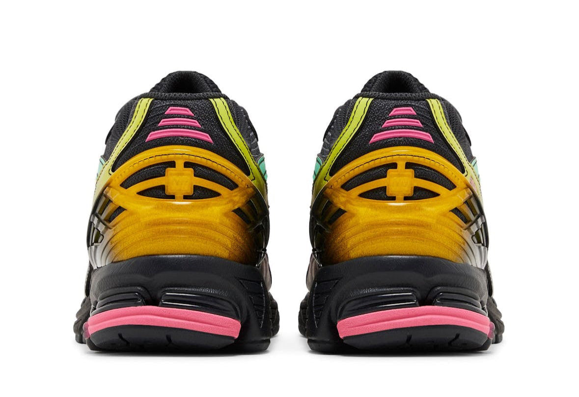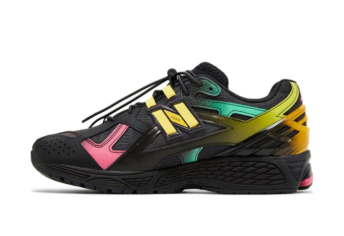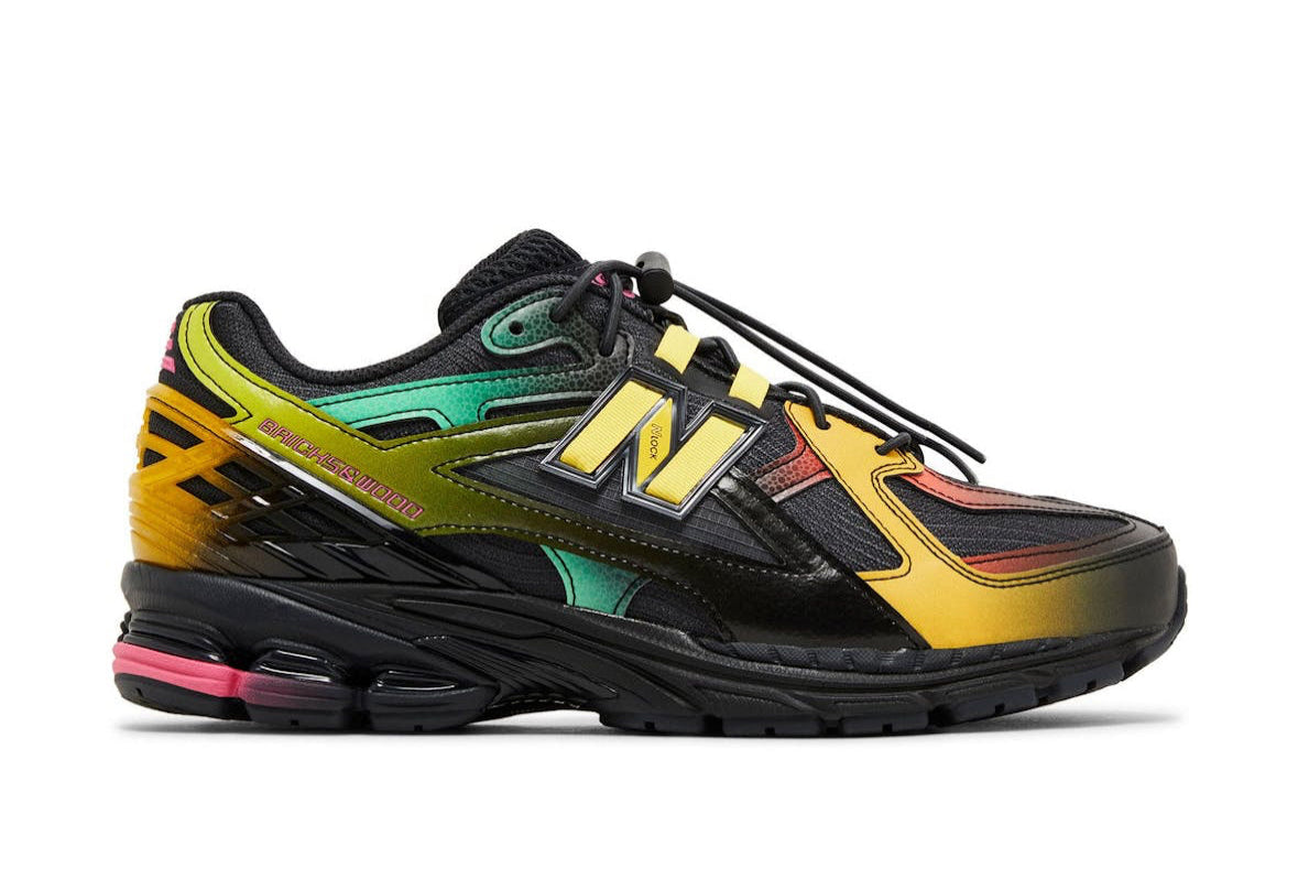 The Bricks & Wood x New Balance 1906U “Echoes of a Butterfly” Inspired by the butterfly effect, the Bricks & Wood x New Balance 1906U “Echoes of a Butterfly” fusion marries striking visuals with performance. It features a black mesh base layered with synthetic leather overlays in a gradient mix of yellow, crimson, fuchsia, teal, green, mint, orange, and pink. A bright pink embroidered butterfly emblem graces the tongue, matching the pink ‘Bricks & Wood’ branding on the lateral heel. The shoe sits on a black foam midsole with pink-tinged ABZORB SBS cushioning in the heel, delivering comfort and support with a vibrant, eye-catching silhouette