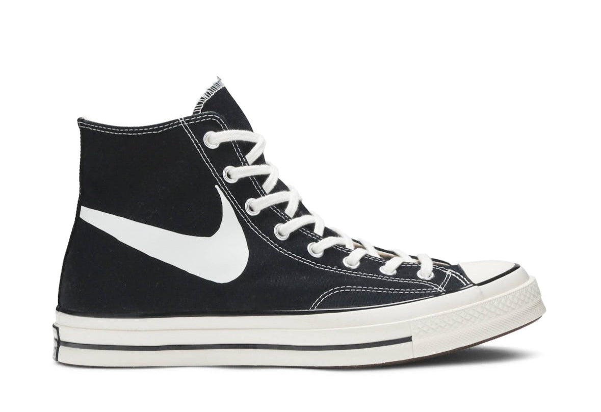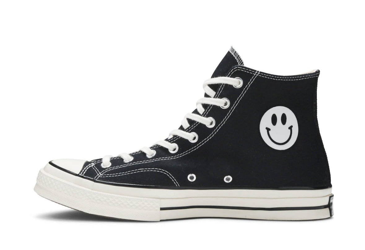 The Chinatown Market x Converse Chuck 70 High 'ComplexCon 2019' is a limited-edition sneaker that debuted at ComplexCon Chicago in July 2019. Designed by Michael Cherman, the collaboration features a classic black canvas upper with a bold white smiley face patch on the lateral ankle. The Chuck 70 silhouette offers a vintage-inspired look with premium materials and a comfortable fit. This release was part of a broader partnership between Converse and Chinatown Market, which also included the UV-reactive Chuck 70 Hi “UV” model. The 'ComplexCon 2019' edition was widely released on August 2, 2019.