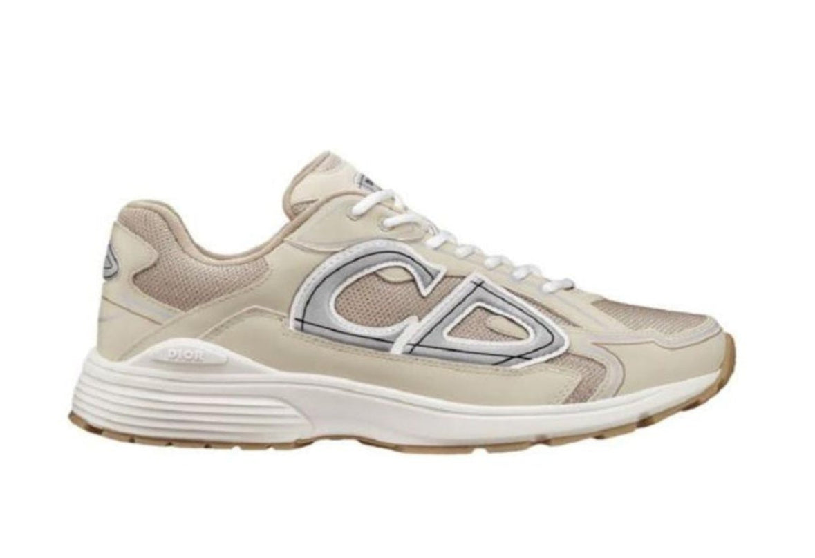 A standout low-top from Dior’s flagship B30 collection, the Cream variant is crafted from a refined blend of cream mesh and technical fabric for breathability and modern flair. It features a graphic, reflective CD30 signature across the sides and back, with silver-tone branding DIOR B30 on the tongue and CD30 at the heel for a bold, contemporary look. Underfoot, an ultra-lightweight sculpted rubber sole adorned with Dior, CD30, and B30 motifs adds sporty elegance and comfort. Interior elastic detailing ensures a snug fit, while meticulous welded construction and Italian craftsmanship complete its luxe yet dynamic aesthetic