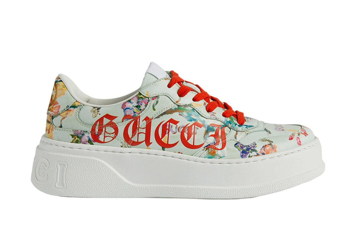 The Gucci Chunky B Soave Amore Flower Plant Mint Green is a bold and artistic sneaker that blends luxury craftsmanship with playful design. Featuring a chunky silhouette, it comes dressed in a refreshing mint green base accented with floral and “Amore” graphics that embody Gucci’s romantic and eccentric style. Premium materials and intricate detailing showcase the brand’s dedication to high-end fashion. The oversized sole offers both comfort and statement appeal, making the sneaker stand out in any collection. Perfect for those who appreciate unique, fashion-forward footwear, this pair balances Gucci’s heritage elegance with modern streetwear influence.