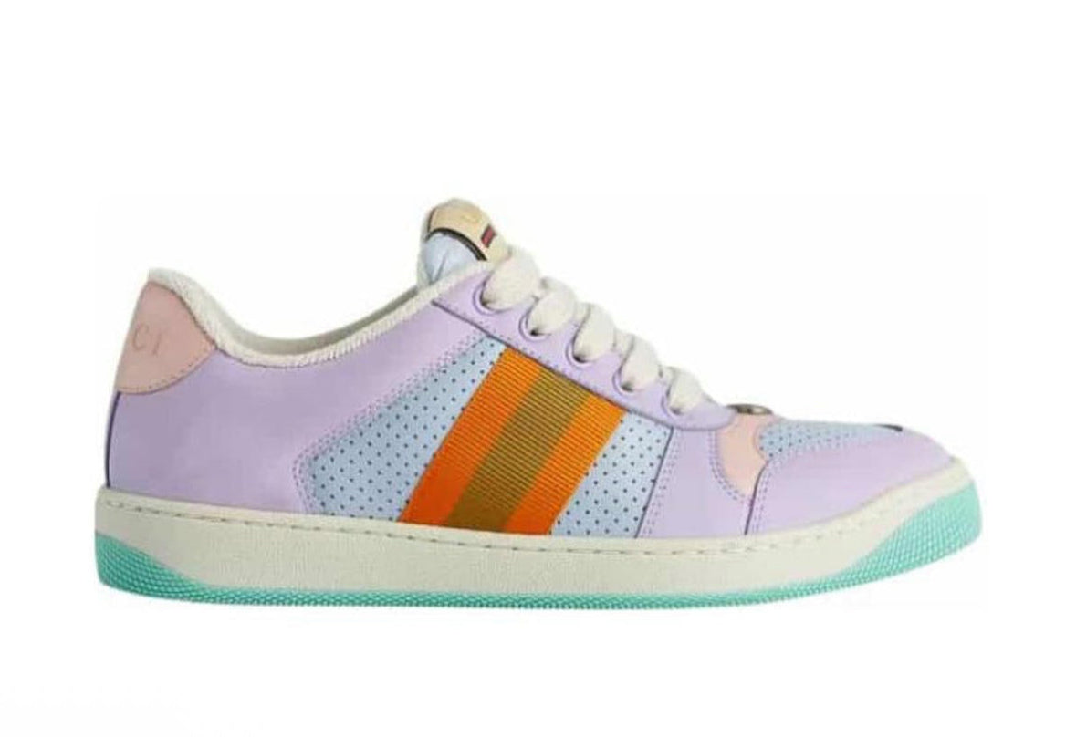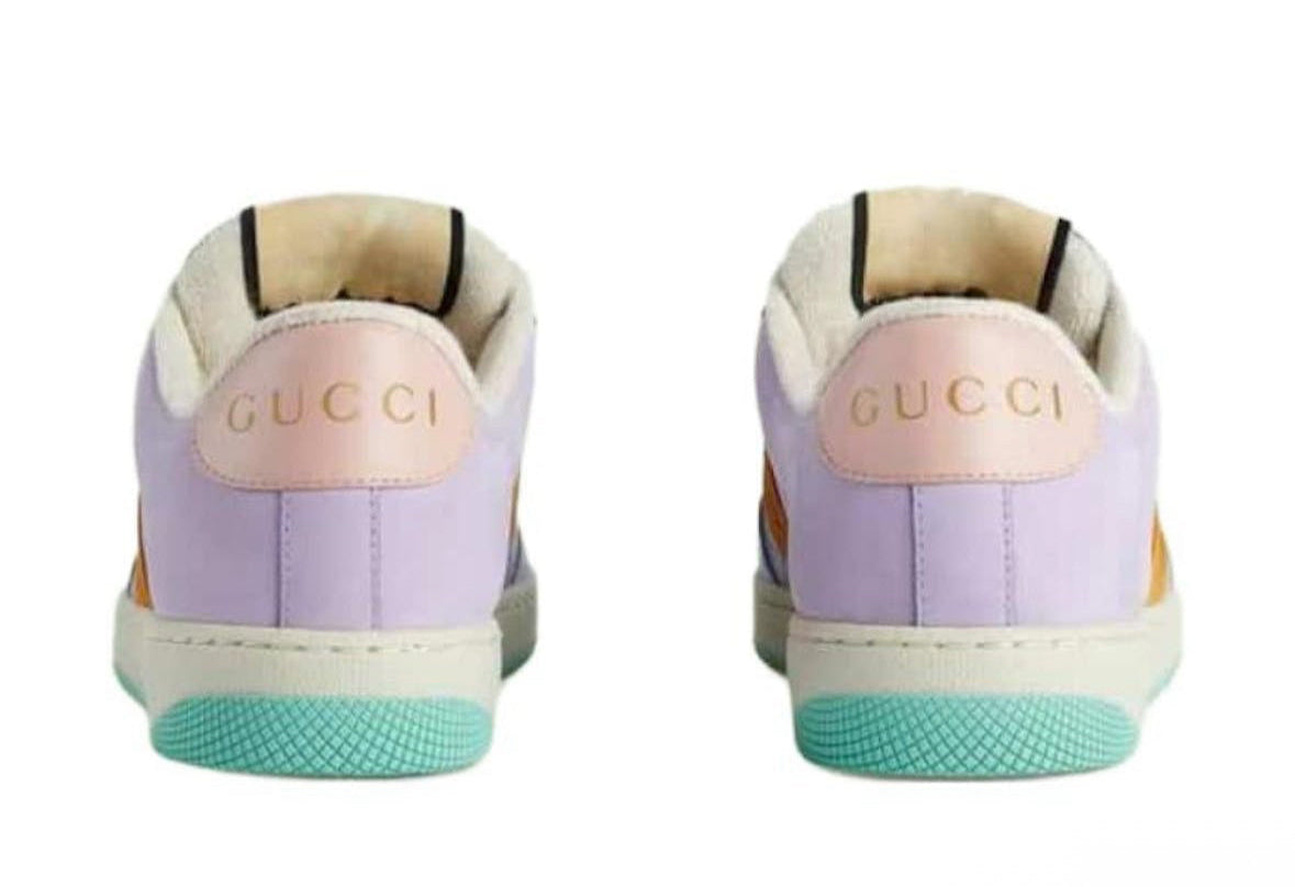 The Gucci Lovelight Screener Purple Orange is a bold reinterpretation of the classic vintage-inspired Screener sneaker. Crafted with Gucci’s signature luxury detailing, it features a striking mix of purple and orange tones that create a vibrant, retro aesthetic. The shoe combines a worn-in, distressed effect with premium leather and suede panels, reflecting Gucci’s signature blend of heritage and modern fashion. Iconic branding, including the interlocking G and classic web stripe accents, ties the design back to the house’s roots. Comfortable yet stylish, the Lovelight Screener is both a statement piece and a versatile sneaker for standout streetwear looks.
