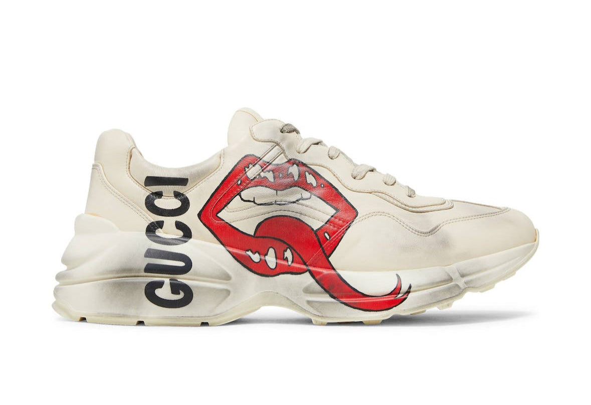 The Gucci Rhyton Mouth sneakers are a bold, statement-making pair of luxury footwear designed for those who want to stand out. Featuring an exaggerated, chunky sole, these sneakers combine retro aesthetics with modern streetwear flair. Crafted from premium leather, the shoes are durable while offering a distinctive, high-fashion edge. The standout design element is the large, playful “GUCCI” logo across the tongue and side, giving them an instantly recognizable appeal. With a comfortable fit and eye-catching silhouette, the Rhyton Mouth sneakers blend style, comfort, and luxury, making them a must-have for fashion-forward sneaker enthusiasts.