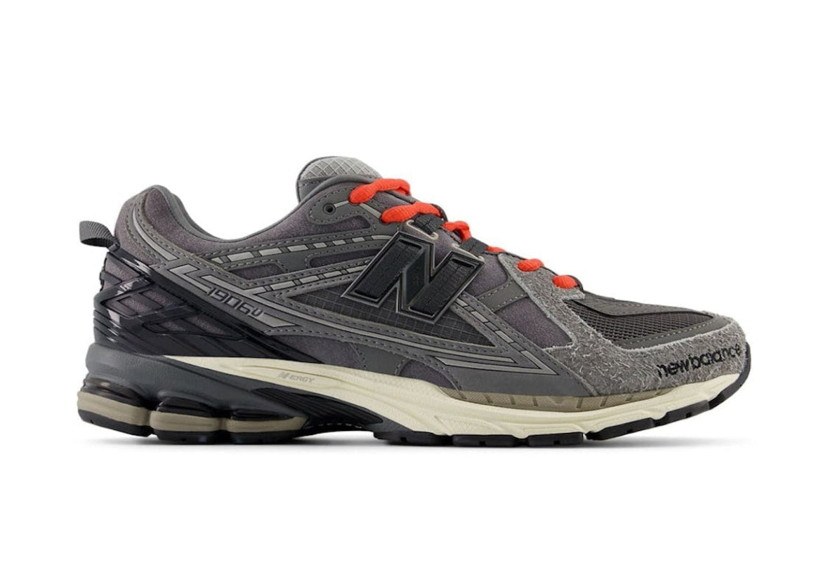 The 1906U “Grey Red” is a bold, fashion-forward take on New Balance’s utilitarian runner, created in collaboration with Taiwanese boutique Invincible and Japanese label N.HOOLYWOOD. The upper blends mesh, ripstop, suede, and leather in layered greys, giving the shoe a technical and premium feel. What sets it apart is the splash of red detailing—especially the standout red toggle laces—that adds energy and contrast to the otherwise neutral base. Function and fashion meet through small design touches like co-branded logos, technical lacing systems, and minimal text hits around the toe and heel. Underfoot, it’s still true to the 1906’s performance roots, with N-ERGY cushioning and ABZORB heel support for everyday comfort.