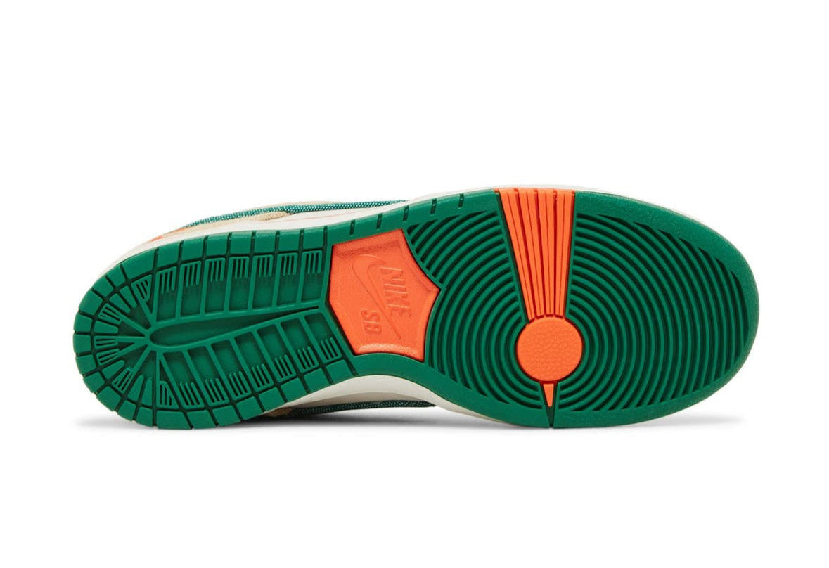 The Jarritos x Nike SB Dunk Low Cream is a vibrant collaboration inspired by the iconic Mexican soda brand, Jarritos. Featuring a creamy beige suede and leather upper, the sneaker is accented with bright pops of orange, green, and red, reflecting the playful and fruity aesthetic of Jarritos bottles. The midsole and outsole are crafted in a clean white and gum tone, while subtle branding details, including Jarritos’ logo on the tongue and heel, add authenticity. Designed for both skateboarding performance and streetwear style, this Dunk Low merges cultural heritage with Nike SB’s classic silhouette for a fresh, collectible look.