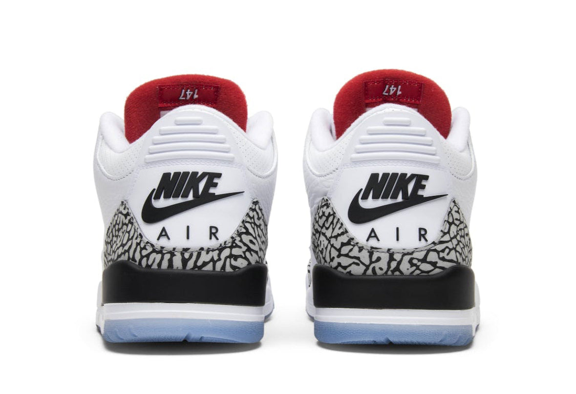 The Air Jordan 3 RNG “Free Throw Line” is a tribute sneaker that honors one of Michael Jordan’s most iconic moments his dunk from the free throw line during the 1988 Slam Dunk Contest. It looks a lot like the classic “White Cement” colorway with its clean white leather upper and grey elephant print, but it includes special touches that tell the story behind the shoe. The standout detail is a red stripe on the translucent sole, marking the exact spot MJ took off from during the dunk. Inside the shoe, there are subtle nods like the time “3:51” printed on the heel tab (when the dunk happened) and “147” inside the tongue, which was his final score. It also features Nike Air branding on the heel for that vintage feel. Overall, it’s a clean, wearable sneaker that mixes classic Jordan style with rich history perfect for both collectors and everyday wear.