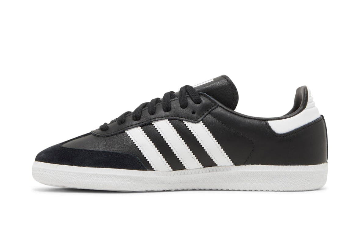 The Juventus FC x Adidas Samba Team "Black White" is a stylish collaboration celebrating the iconic Italian football club. This special edition reimagines the classic Adidas Samba silhouette with Juventus-inspired black and white color blocking, paying homage to the team's heritage. Crafted with premium leather and suede, the shoe features subtle Juventus branding, a classic gum sole, and the signature three stripes in white. Designed for both casual wear and die-hard fans, this limited-edition Samba merges vintage sport aesthetics with modern streetwear appeal, embodying the legacy of one of Europe’s most celebrated football clubs in a timeless design.