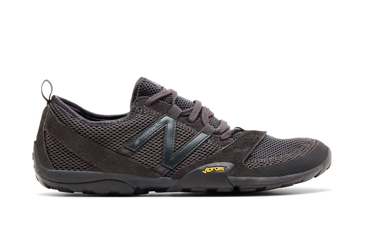 The New Balance MT10 Black Castlerock is a sleek, minimalist trail shoe designed for those who want a natural, barefoot-like feel without sacrificing grip or durability. It features a lightweight suede and mesh upper in a stealthy black and grey colorway, giving it a low-key, versatile look that works just as well on the trail as it does around town. Underfoot, the Vibram® outsole provides solid traction with its rounded lugs, making it dependable on dirt paths, rocky surfaces, or urban terrain. The shoe has a close-to-ground ride with minimal cushioning, ideal for runners or walkers who like to feel connected to the surface beneath them. It’s snug-fitting, super flexible, and built for people who value simplicity, control, and natural movement over heavy padding.