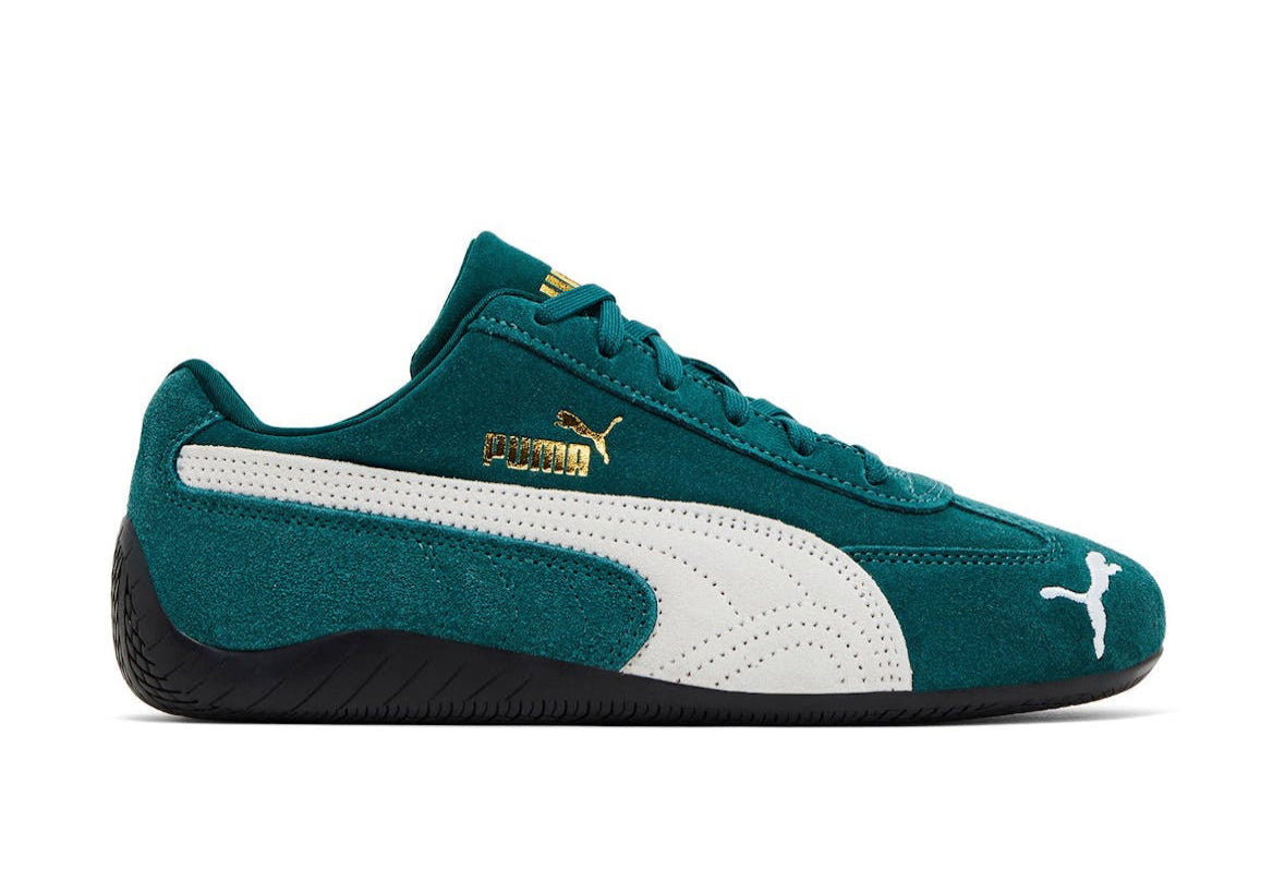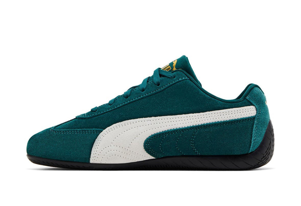 The Puma Speedcat OG Dark Myrtle is a sleek, retro-inspired racing shoe that fuses style and performance. Featuring a low-profile silhouette, it draws on Puma’s motorsport heritage for a classic yet modern look. The dark myrtle colorway gives it a deep, understated elegance, while the soft suede and leather upper ensures durability and comfort. With a cushioned midsole and rubber outsole, it provides excellent grip and support for everyday wear or casual driving. Signature Puma branding on the side and heel adds authenticity, making the Speedcat OG Dark Myrtle a versatile sneaker that balances sporty design with street-ready appeal.