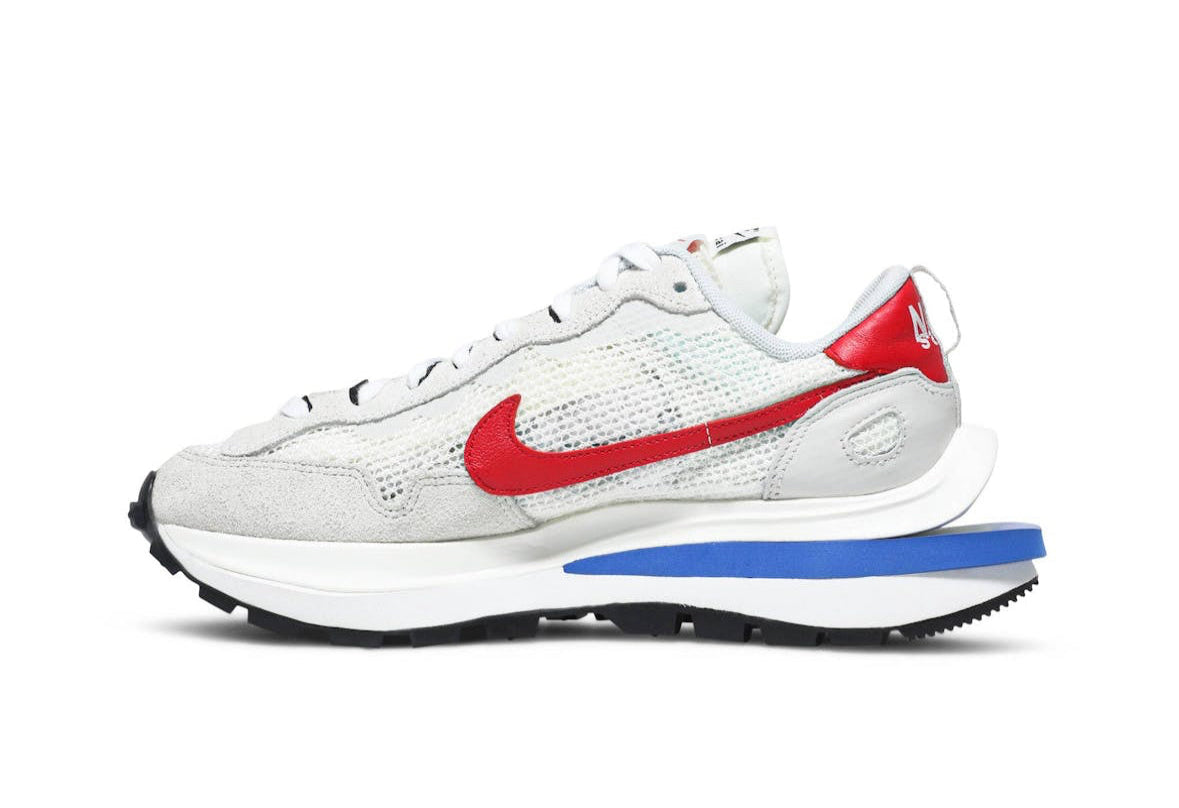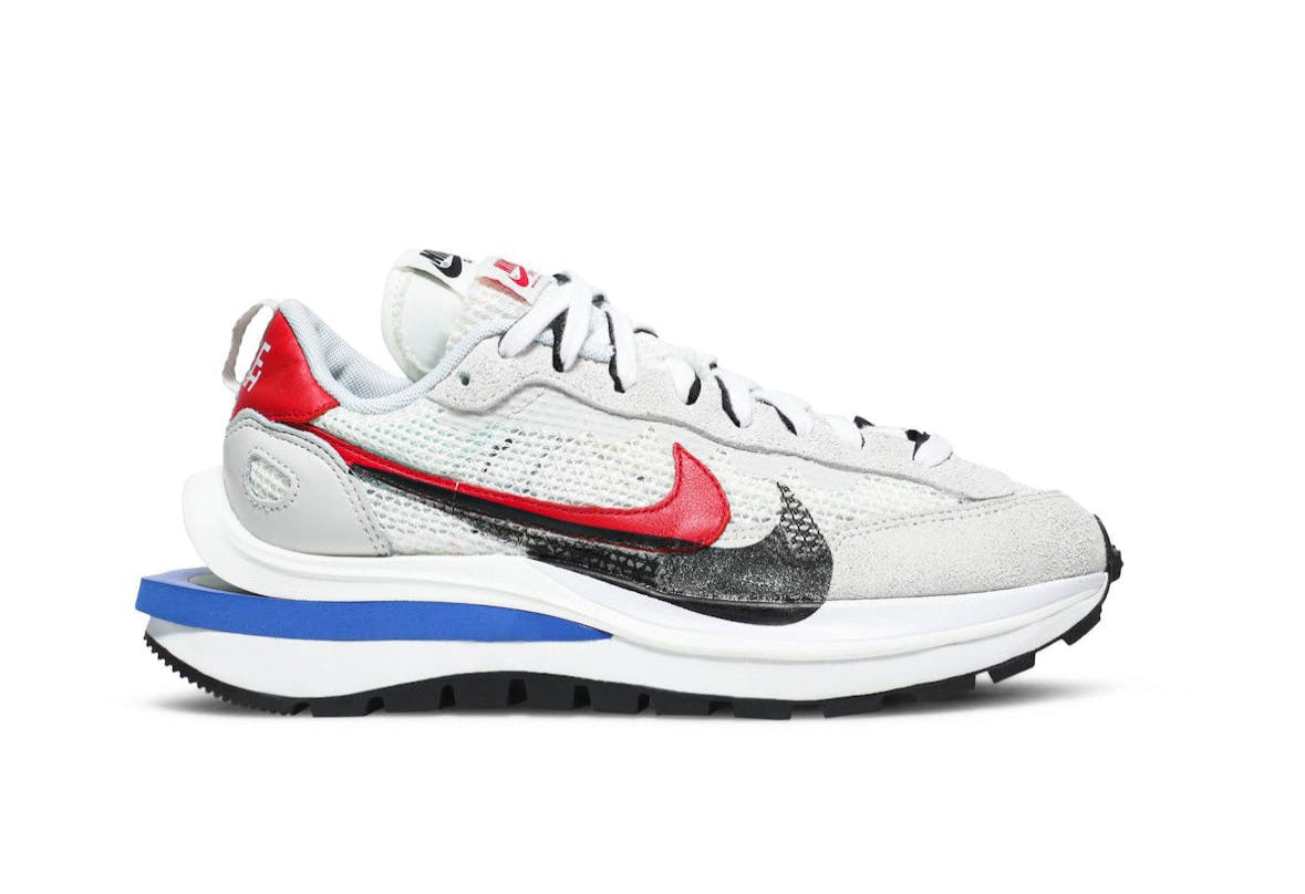 The Sacai x Nike Vaporwaffle “Sail” is a modern reinterpretation of Nike’s running heritage, blending retro aesthetics with bold, futuristic design. Featuring a layered construction, the sneaker showcases a mix of mesh, suede, and leather in clean neutral tones of sail, white, and cream. Sacai’s signature double-stacked details stand out, including the dual tongues, layered Swooshes, and an exaggerated midsole that extends beyond the heel. This unique silhouette merges sport and style, offering comfort with its foam cushioning while pushing the boundaries of sneaker design. The “Sail” colorway emphasizes versatility, making it a standout piece in contemporary streetwear.