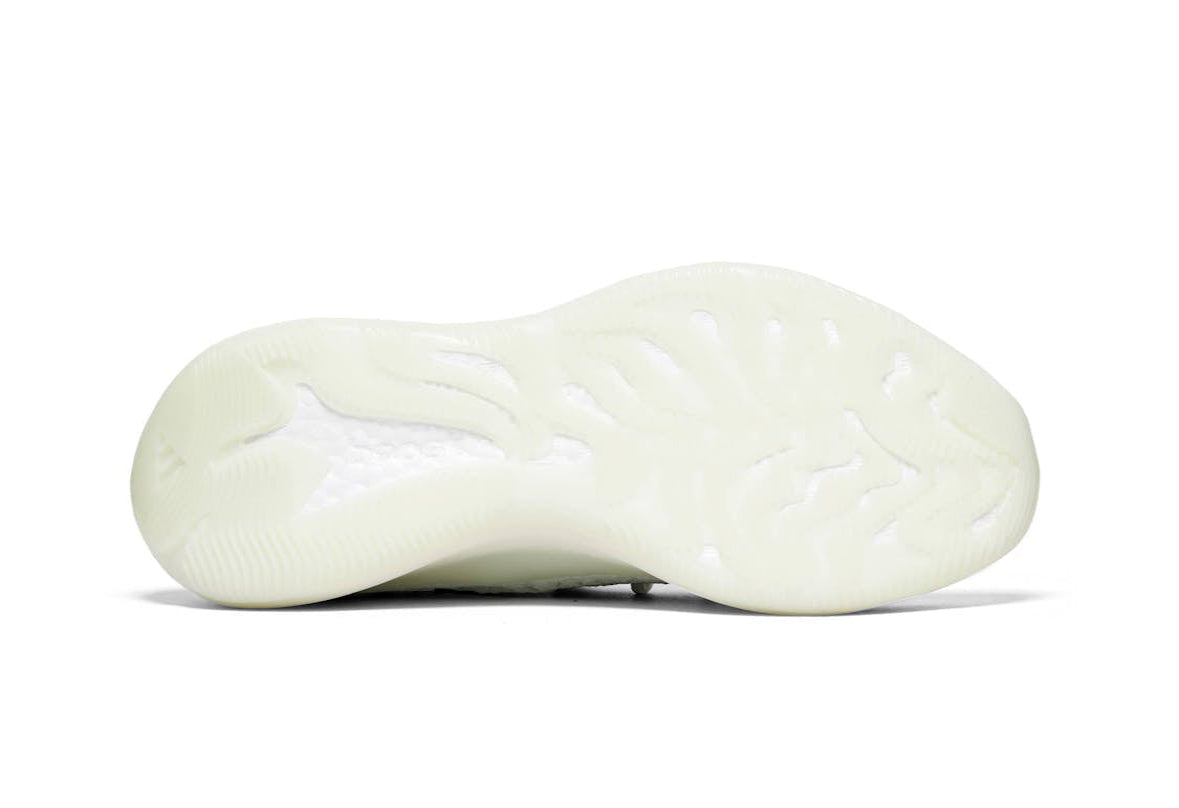 The adidas Yeezy Boost 380 "Calcite Glow" is a clean, futuristic sneaker with a surprise feature—it glows in the dark. During the day, it sports a soft white and grey Primeknit upper with subtle patterns, giving it a fresh and minimalist look. But in low light or under UV, parts of the shoe glow with a greenish tint, especially along the sides. It has a snug, sock-like fit with breathable knit and a translucent Boost midsole that provides soft, responsive cushioning. The semi-translucent outsole adds durability and grip while keeping the look sleek. Overall, it’s a comfy, everyday sneaker with a bright twist—perfect if you like clean style with a bit of hidden flair.